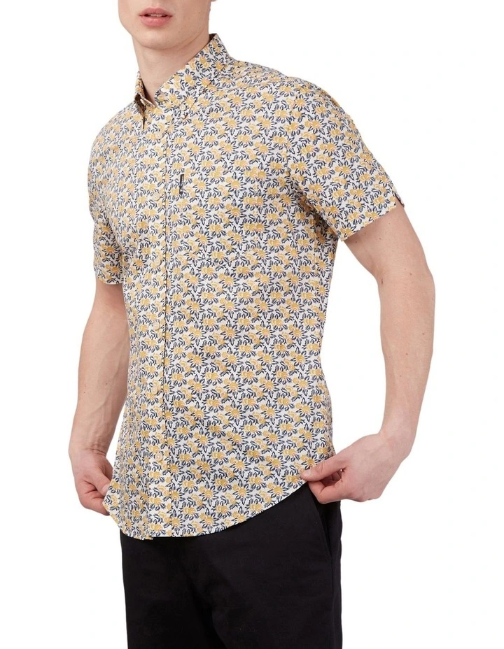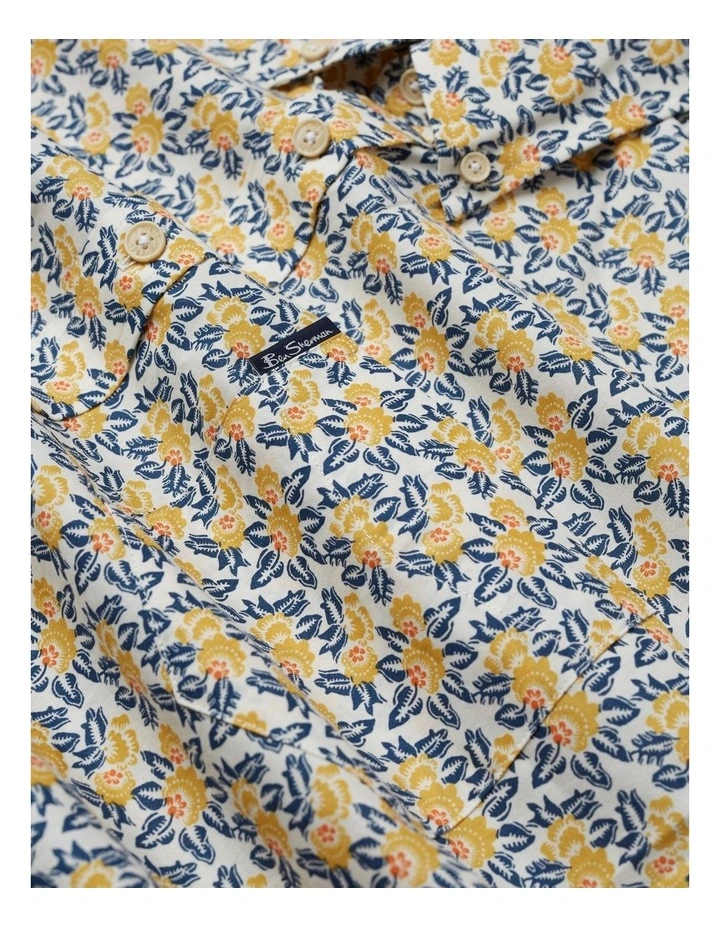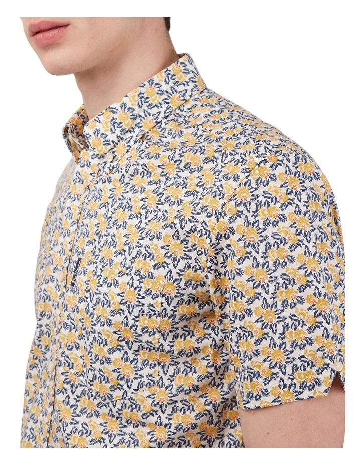 A short sleeve shirt designed in a block botanical print, perfect for the summer season. This shirt comes in a regular fit and made from 100% cotton.Β