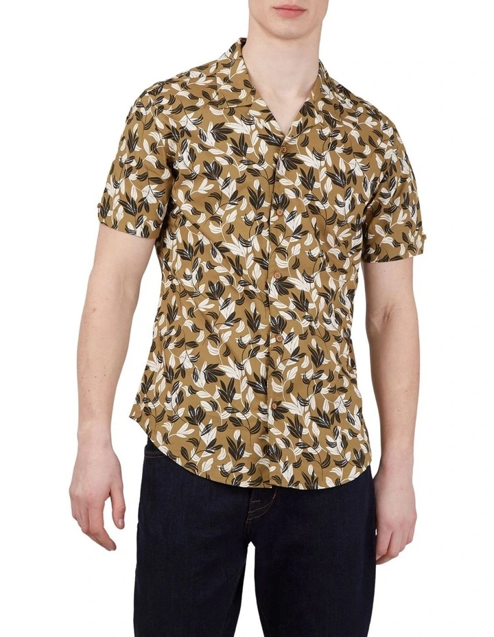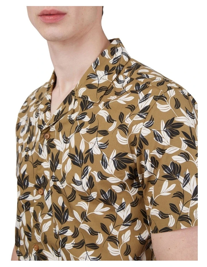 A short sleeve regular fit botanical print shirt in a lightweight cotton fabric.Β