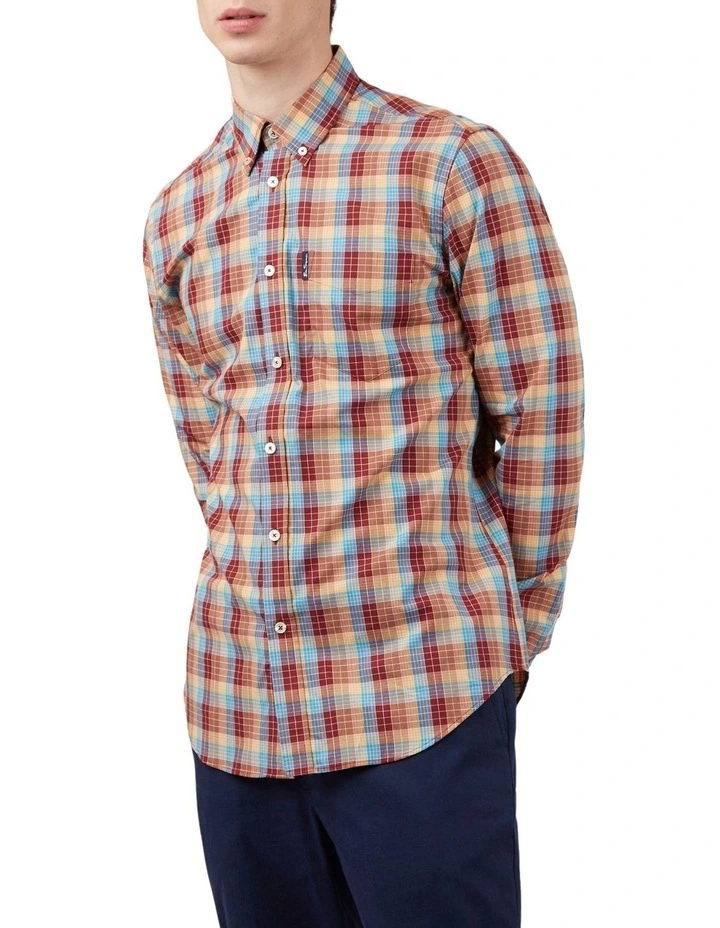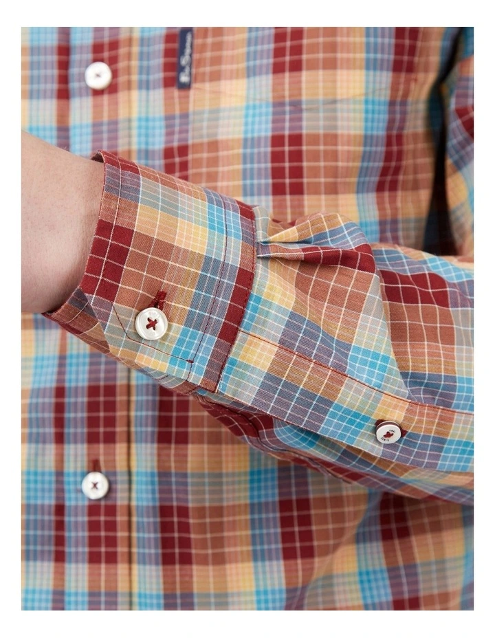 A long sleeve shirt in a regular fit designed in a summer frame check and features a 2 finger button down collar.Β