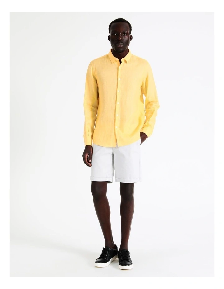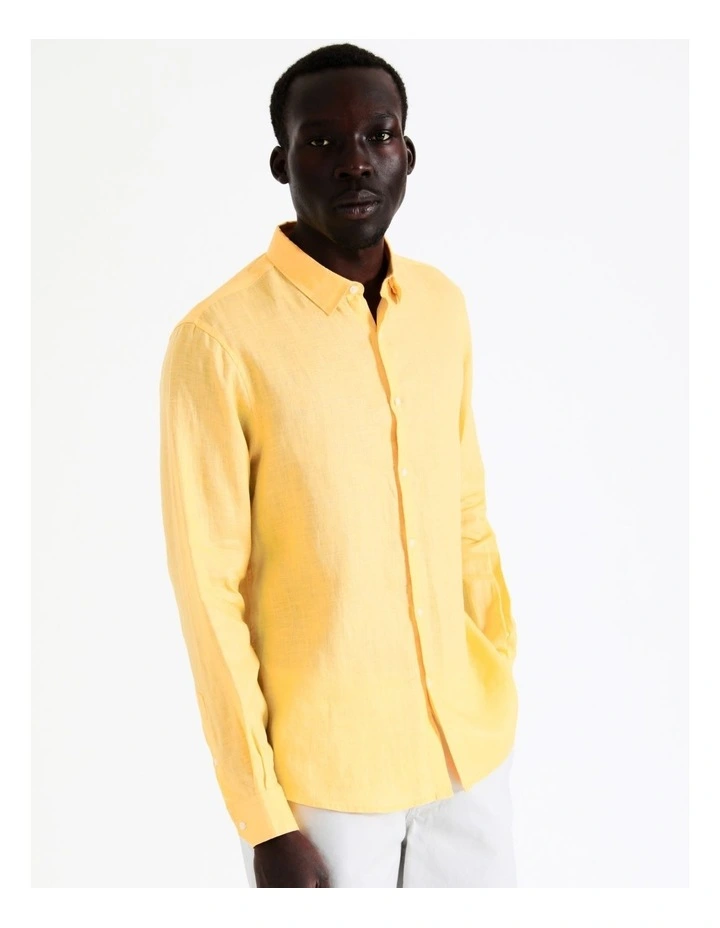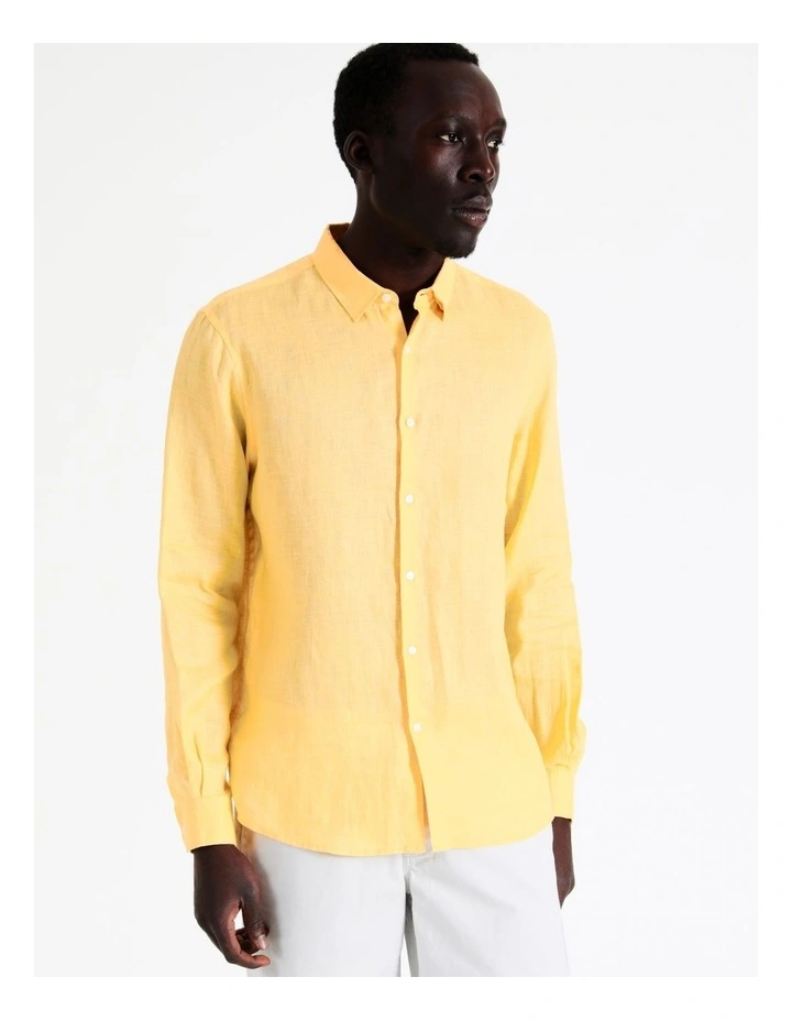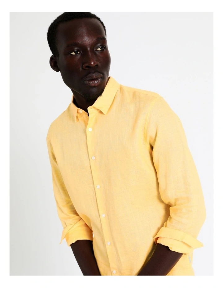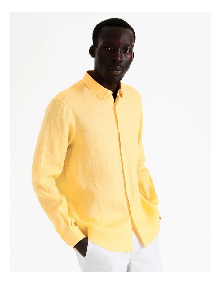 BlaqΒ Bondi Linen Long Sleeve Relaxed Shirt in Yellow