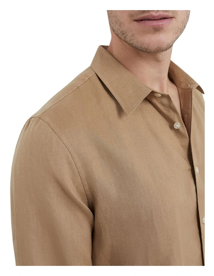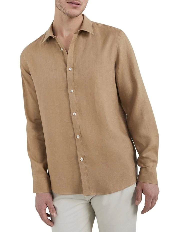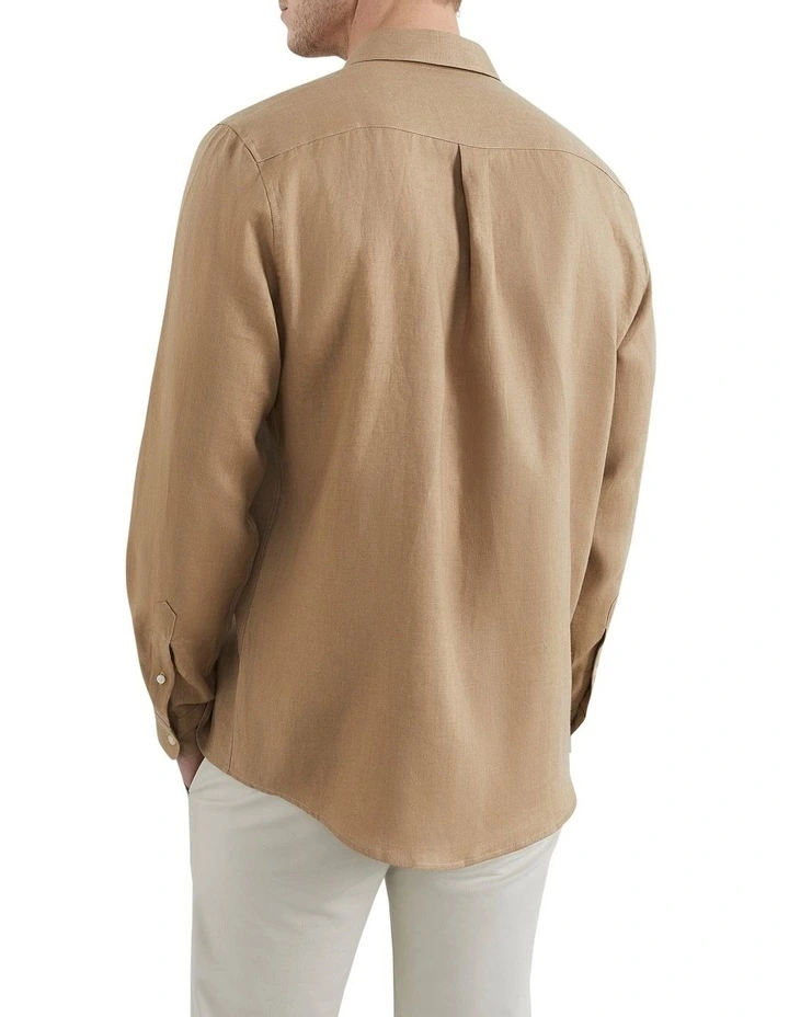 Our Linen Classic Fit Shirt offers a casual and comfortable style. Made from soft and breathable linen fabric, this shirt has long sleeves, a relaxed fit, curved hemline, and a back pleat detail. An updated relaxed fit for great everyday style. Wear with our Trucker Jacket and Destination T-Shirt.Β