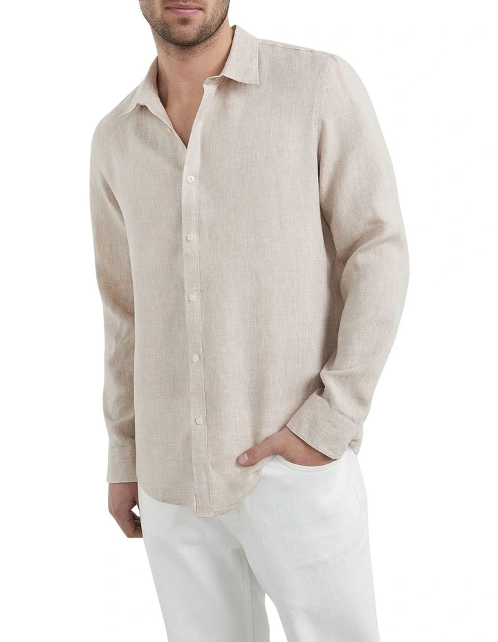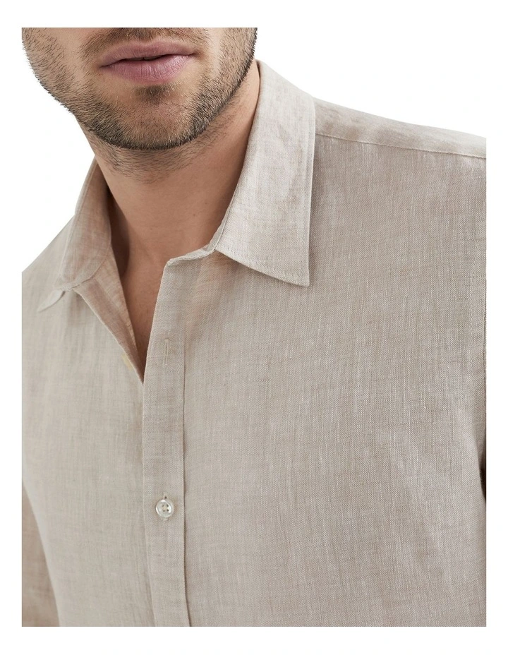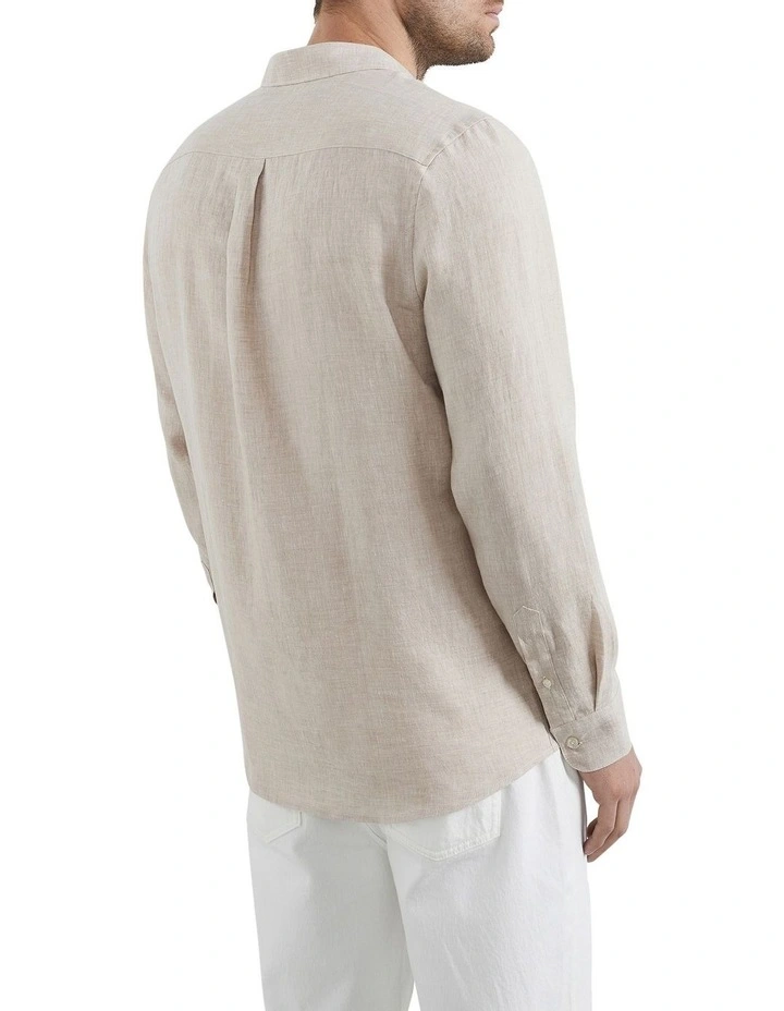 Our Linen Classic Fit Shirt offers a casual and comfortable style. Made from soft and breathable 100% linen fabric, this shirt has long sleeves, a relaxed fit, curved hemline, and a back pleat detail. An updated relaxed fit for great everyday style. Wear with our Trucker Jacket and Destination T-Shirt. Model wearing our White, Birch and Smoke Blue colourways wears a size M. He usually wears a standard M and is 188cm tall.Model Wearing our Black, Khaki, Marine Blue, Oatmeal Melange, Light Blue Melange, Soft Khaki and Smoke Stripe colourways wears a size M. He usually wears a standard M and is 185cm tall.
