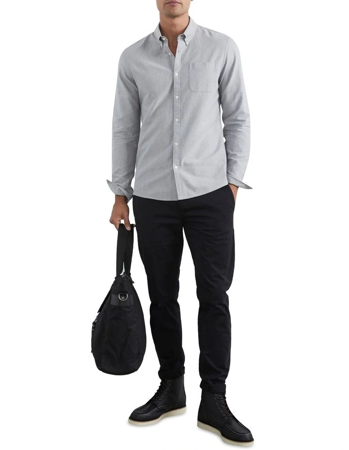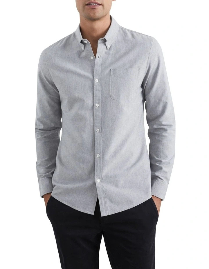 Add the Oxford Slim Fit Shirt to your wardrobe. Made from 100% cotton, this shirt has a slim fit, curved hemline, and single chest pocket. Wear with our slim chino pant and crew neck tee.Β