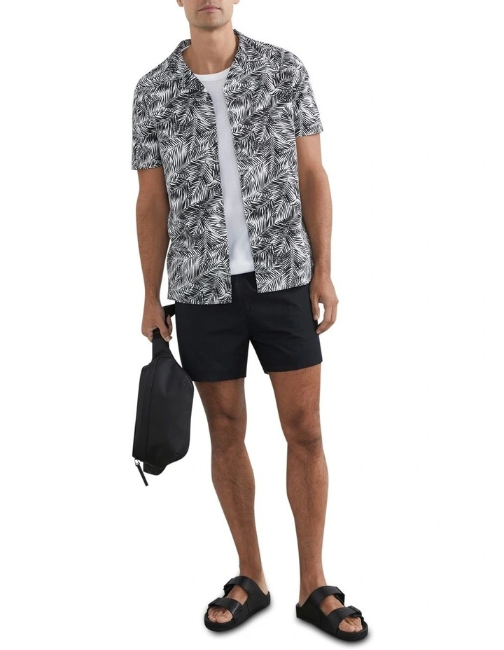 Our Palm Camp Collar Classic Fit Shirt is a trendy addition to your wardrobe staples. It features a stylish palm print on a cotton poplin base, with a camp collar, short sleeves, regular fit and button down design. Pair with our Classic Swim Short and Zane Leather Slide. Our model is 188cm tall and wears a size M.