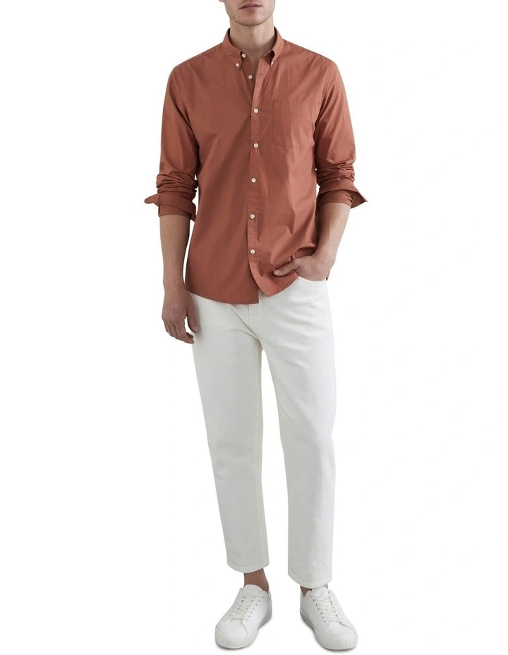 For effortless style this summer it doesn’t get better than our Poplin Classic Fit Shirt. Made from lightweight, 100% cotton poplin and featuring long sleeves, a collar, left chest pocket and centre-front buttons, this timeless shirt will become your new go-to. Pair with our Tapered Jeans and Hamish Canvas Sneakers. Our model is 188cm tall and wears a size AU M.