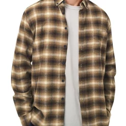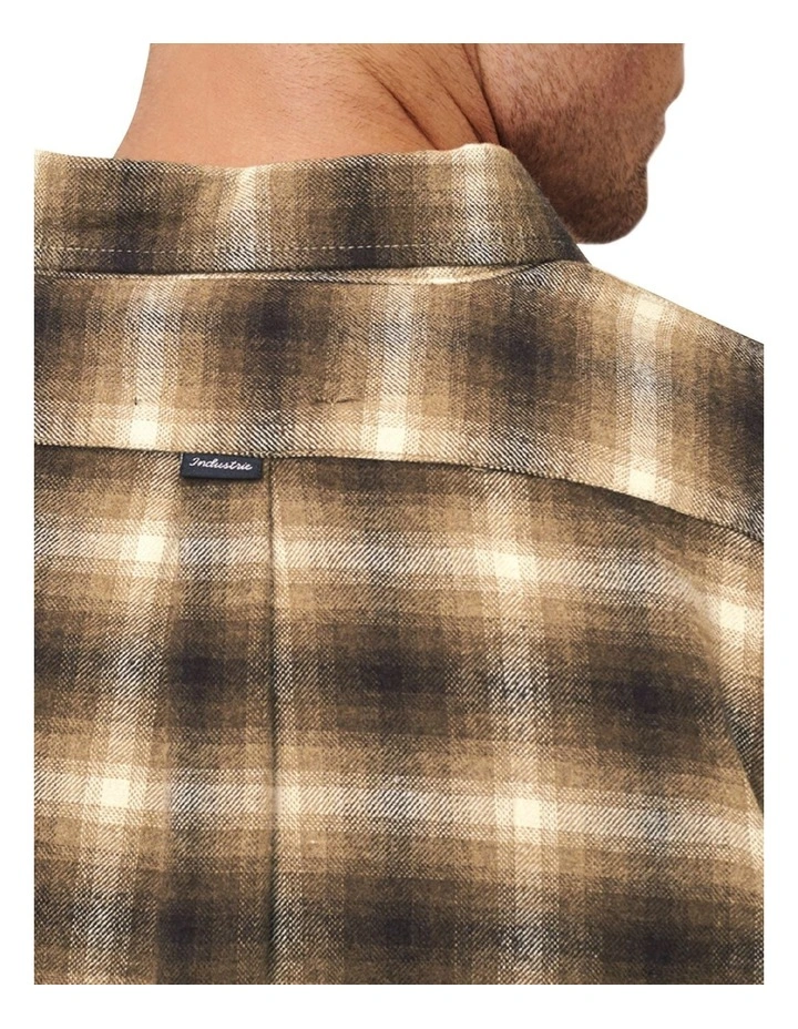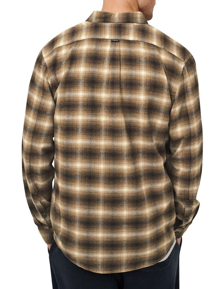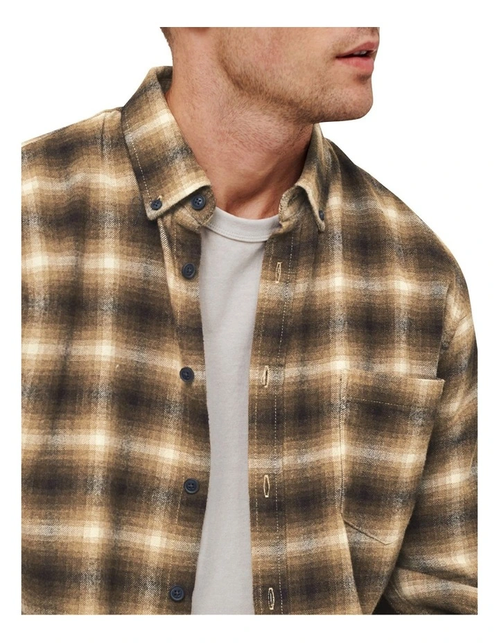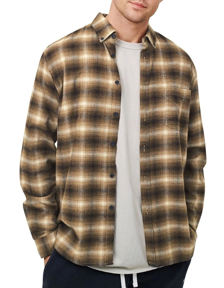 A basic long sleeve flannel shirt in a classic check design, with buttoned cuffs and a chest pocket.