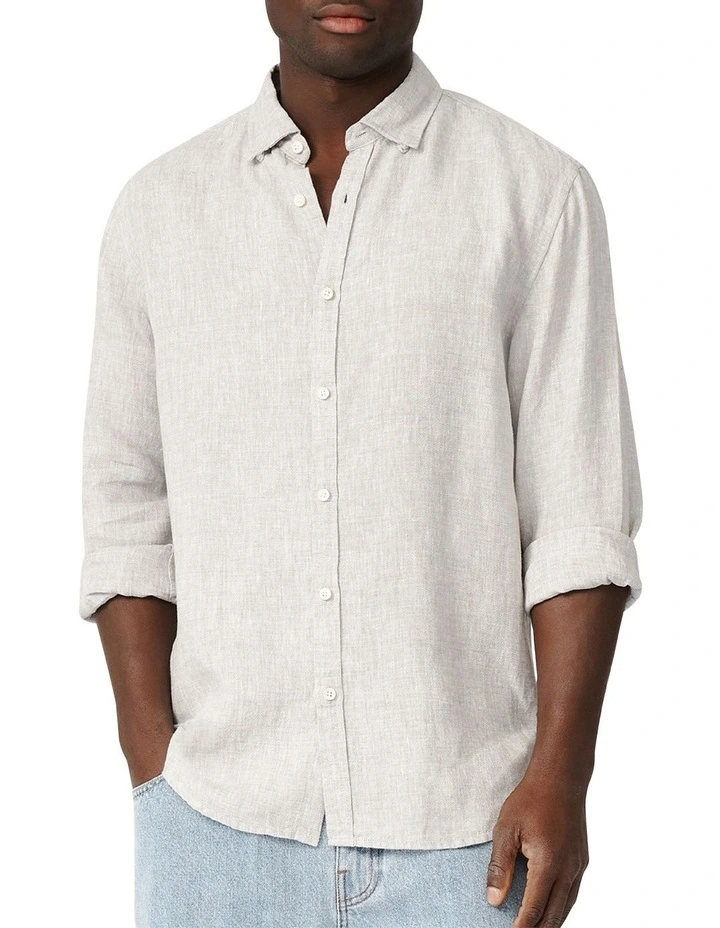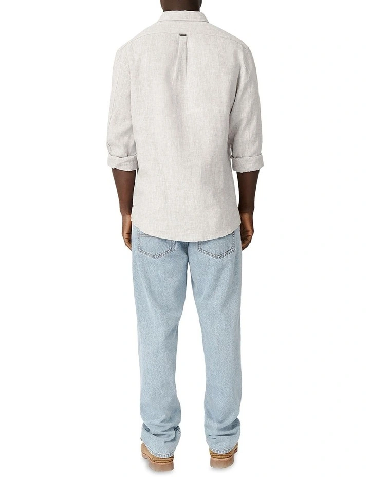 The Tenneriffe Linen L/S Shirt in the colour Salt & Pepper works back with the Seattle Jean in Stone Wash . Relaxed fit, durable linen fabric and all the classic elements of a good shirt (collar, front button fastening & rolled sleeves)