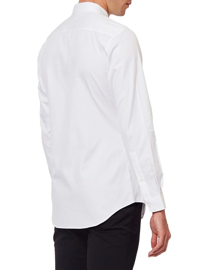 White long-sleeve shirt comes