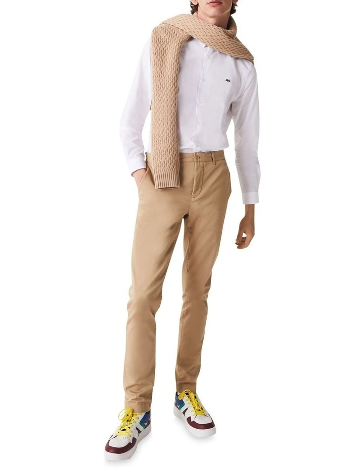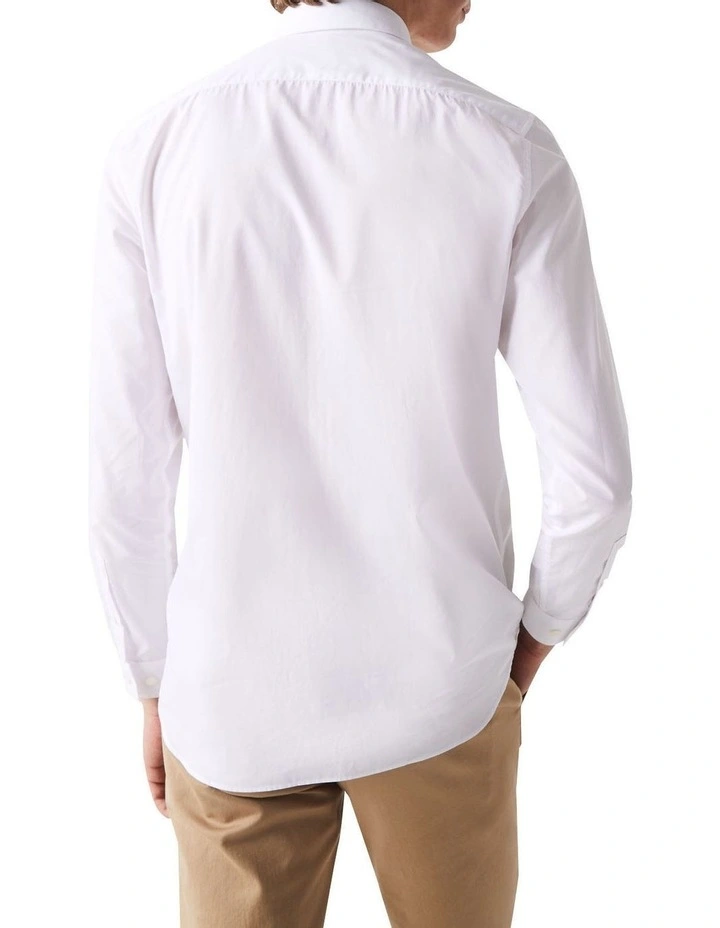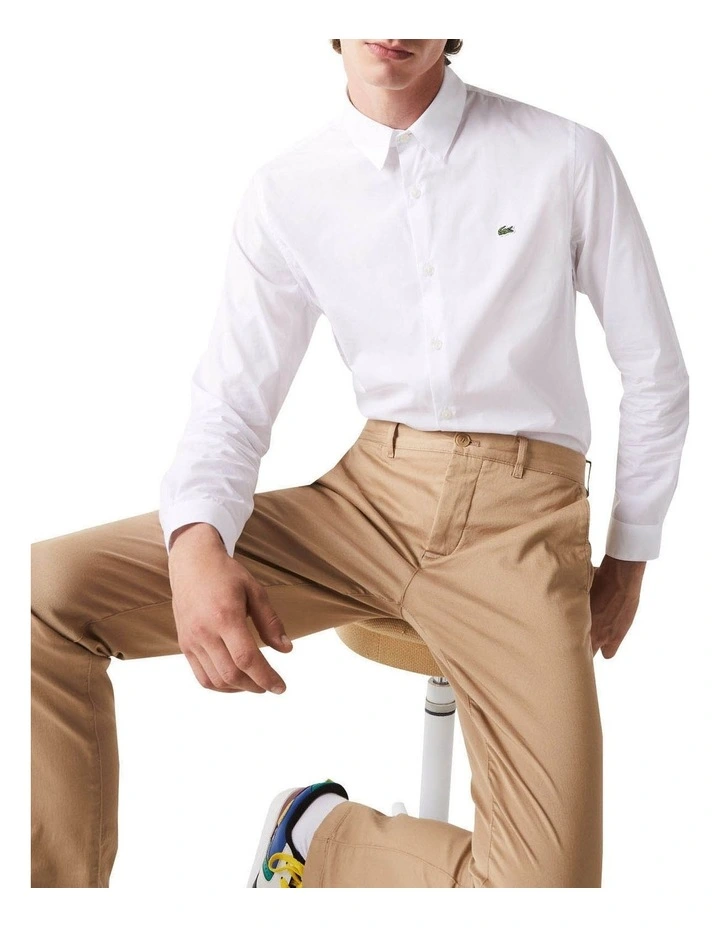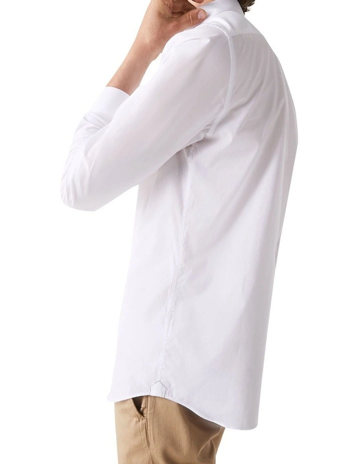 Feel the city spirit and freedom of movement of this solid-colored stretch cotton poplin shirt. This comfortable piece features a small green embroidered crocodile on the chest and Lacoste engraved mother-of-pearl effect buttons. You can confidently wear it with all of this season’s pants.
