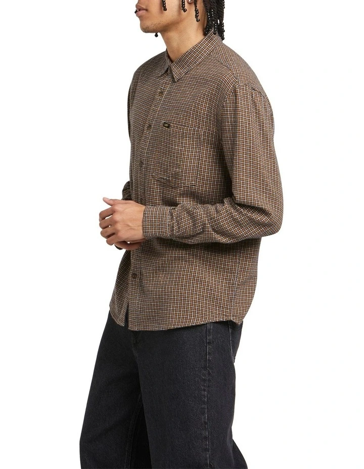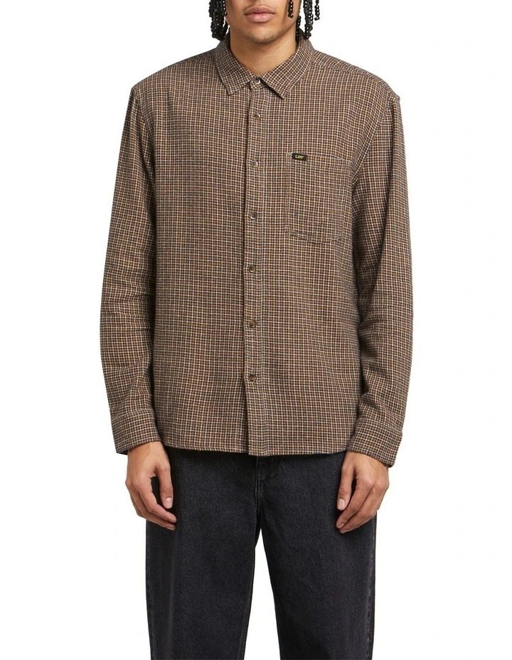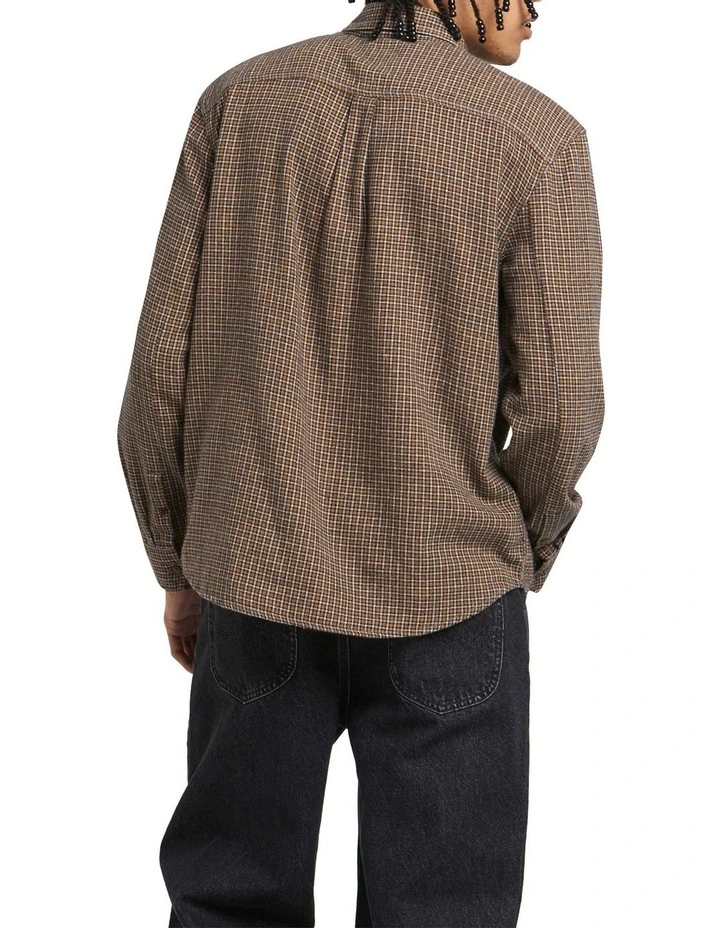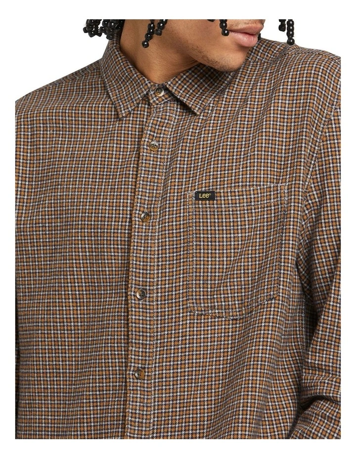 The Lee Check Shirt is a casual long sleeve workwear style shirt. The shirt has been woven in a yarn dyed check pattern in a soft cotton yarn. Featuring a rust and orange colour check with a subtle contrast stitching for the regular guy to wear casually to work or even to the pub.