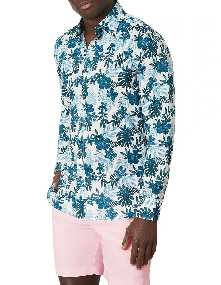 The Burns Printed Shirt. is a fun, stylish addition for the spring/summer season. It’s crafted from 100% cotton and is designed for a casual (Cuban) fit. Pair over sand chinos and leather deck shoes.