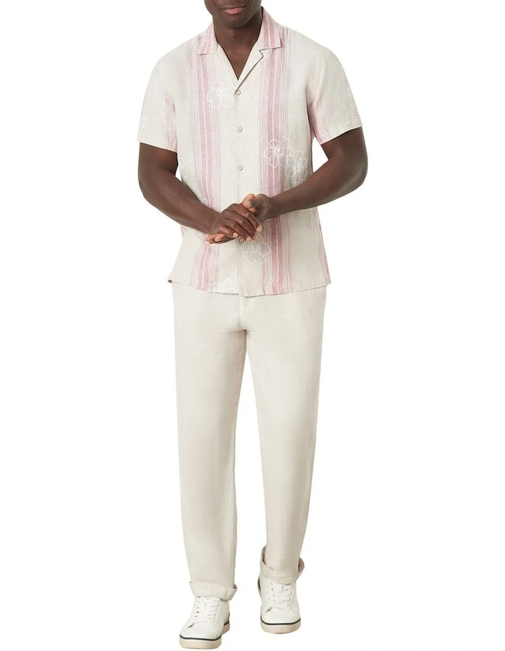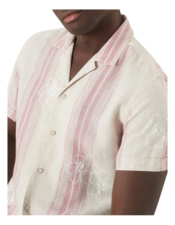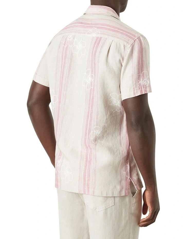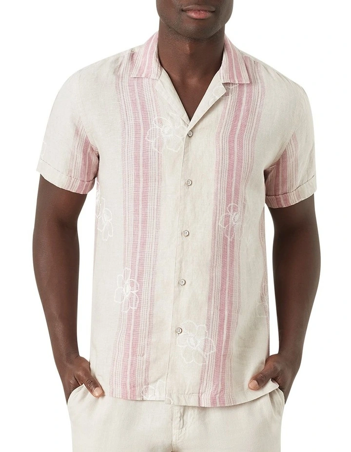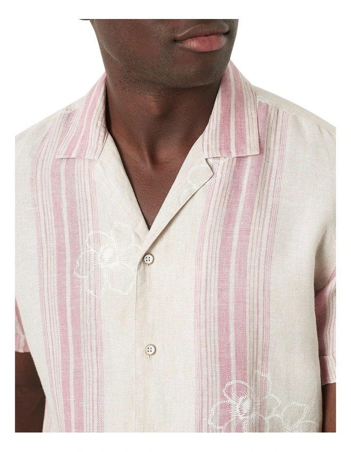 A high summer must-have, the Mapleton Camp Collar Short Sleeve shirt forms a part of our resort collection and we’ll be damned if this isn’t with us on vacation this summer. Crafted from 100% linen in a seasonal retro stripe design, the Mapleton is further enhanced with a unique garment washed to achieve that worn-in look. Designed for a regular fit, its camp collar is inspired by the vintage shirts of the 70s but balanced with contemporary design. Pair back with linen shorts to complete your seasonal holiday look.