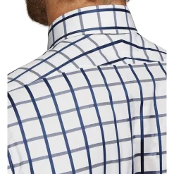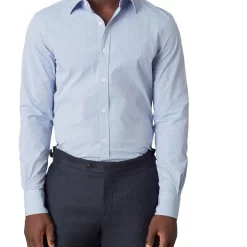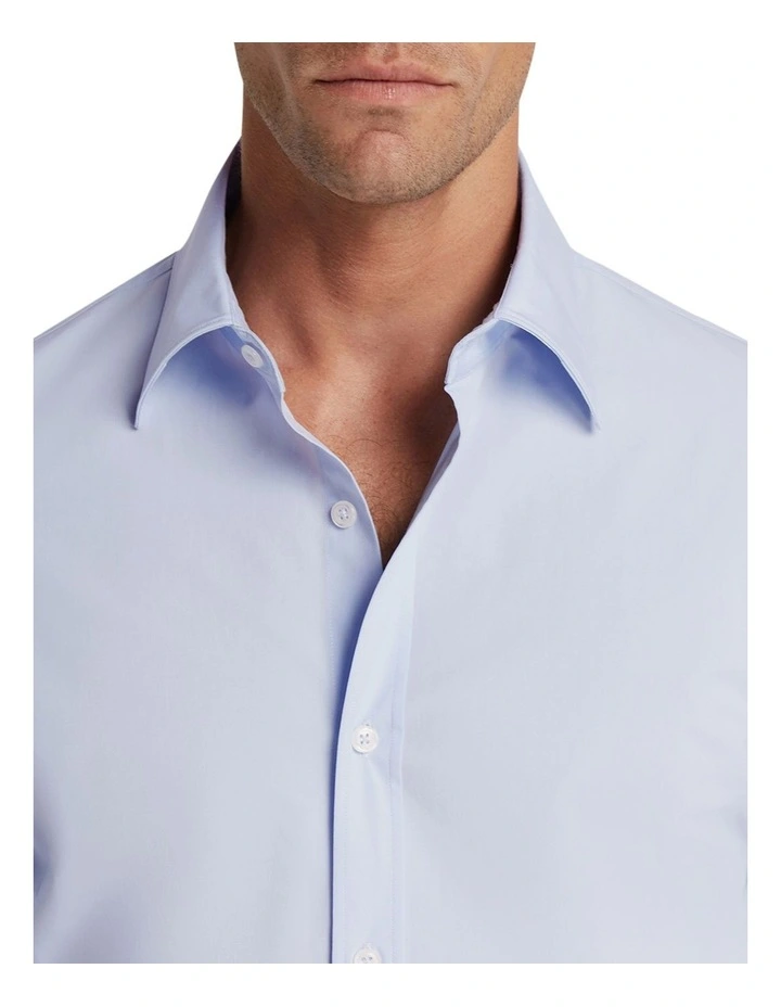 Features: Poplin construction; Great stretch recovery; Floating interlining on collar and cuff; Back darts; Twin needle side seams; 3mm stitching on collar and cuff;