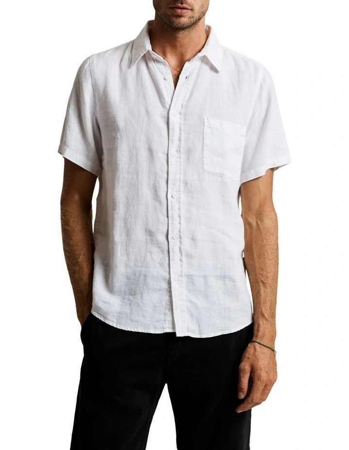 Best deal โค๏ธ Mr Simple Linen Short Sleeve ๐ Shirt White ๐
