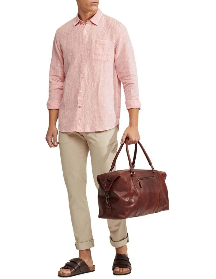 Add the Holloway Pure Linen Shirt to your collection for a relaxed dapper look. Crafted from 100% linen and cut in a regular fit, this shirt has a front pocket and contrast trims on the sides and back. Team yours with chinos and sandals to complete your leisure look.