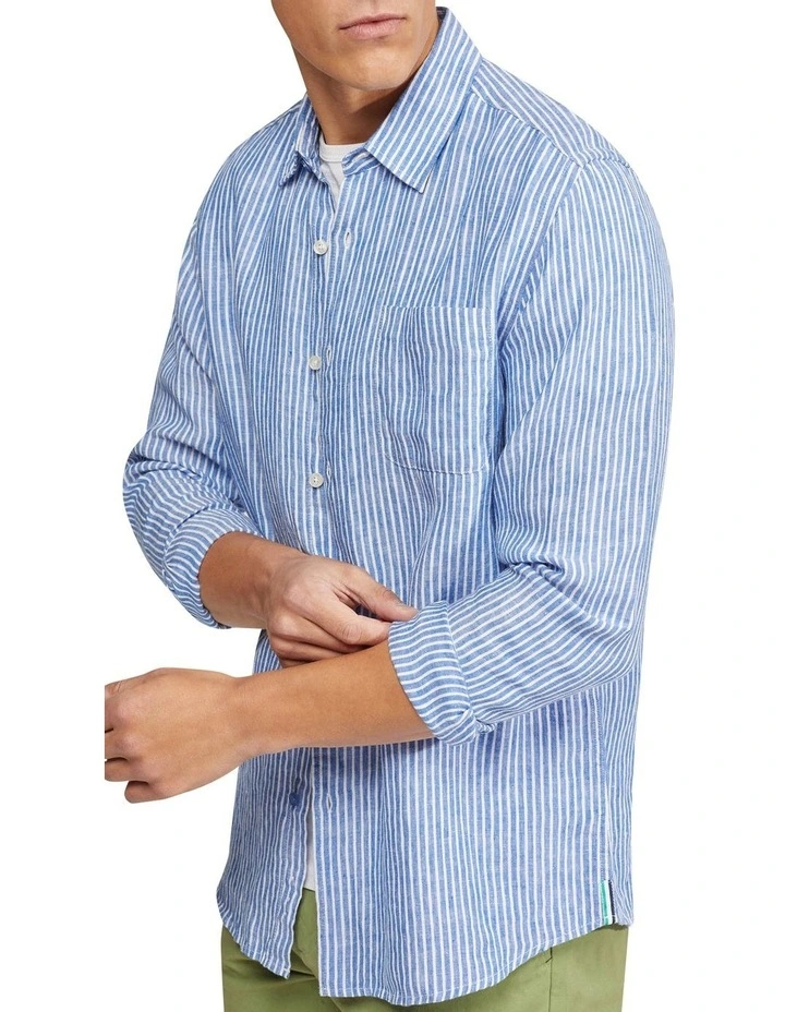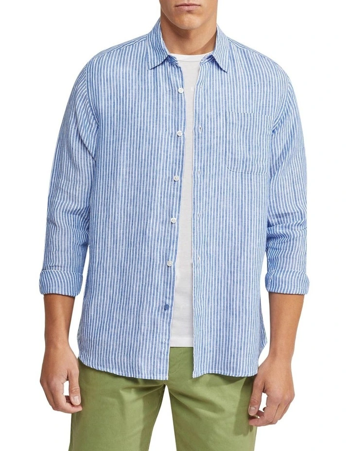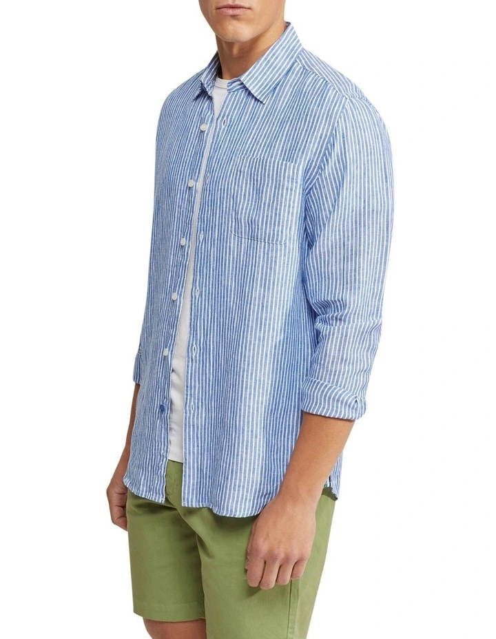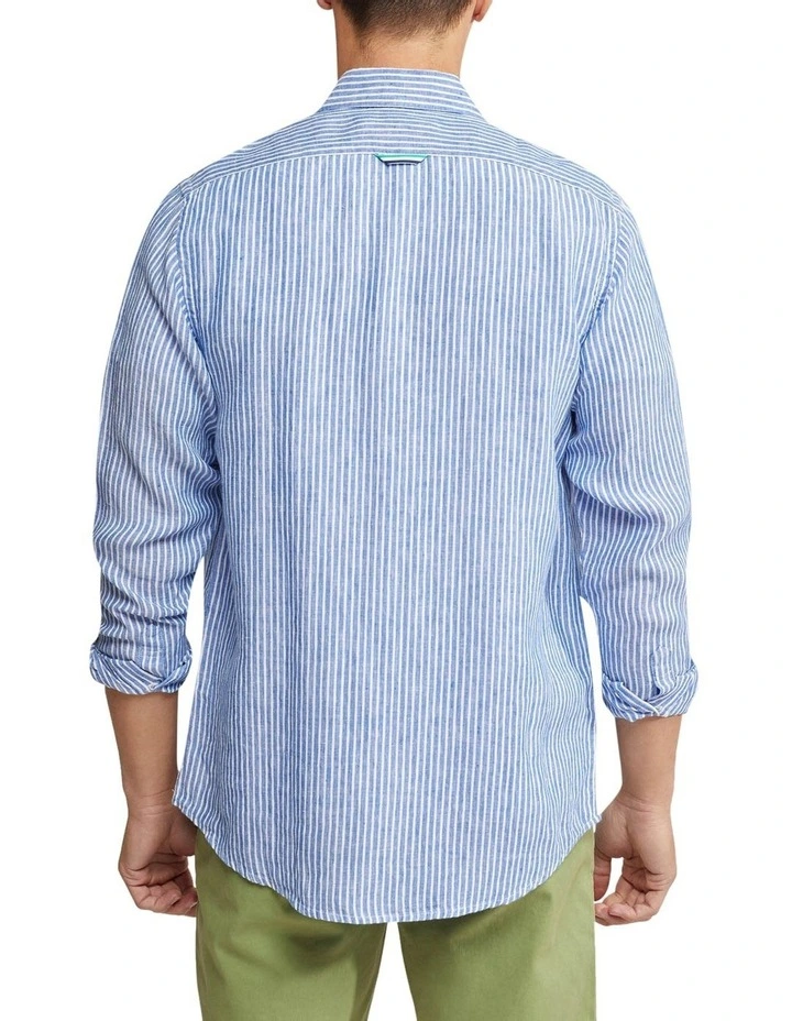 Add the Holloway Pure Linen Shirt to your collection for a relaxed dapper look. This casual and cool shirt is crafted from 100% linen and cut in a regular fit. It has a vertical stripe pattern with a chest pocket and contrast trims on the sides and back. Team yours with chino shorts and sneakers to complete a leisure look.