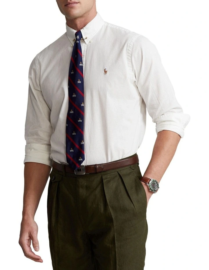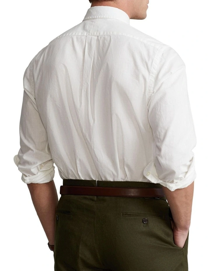 - Button-down point collar. Buttoned placket.