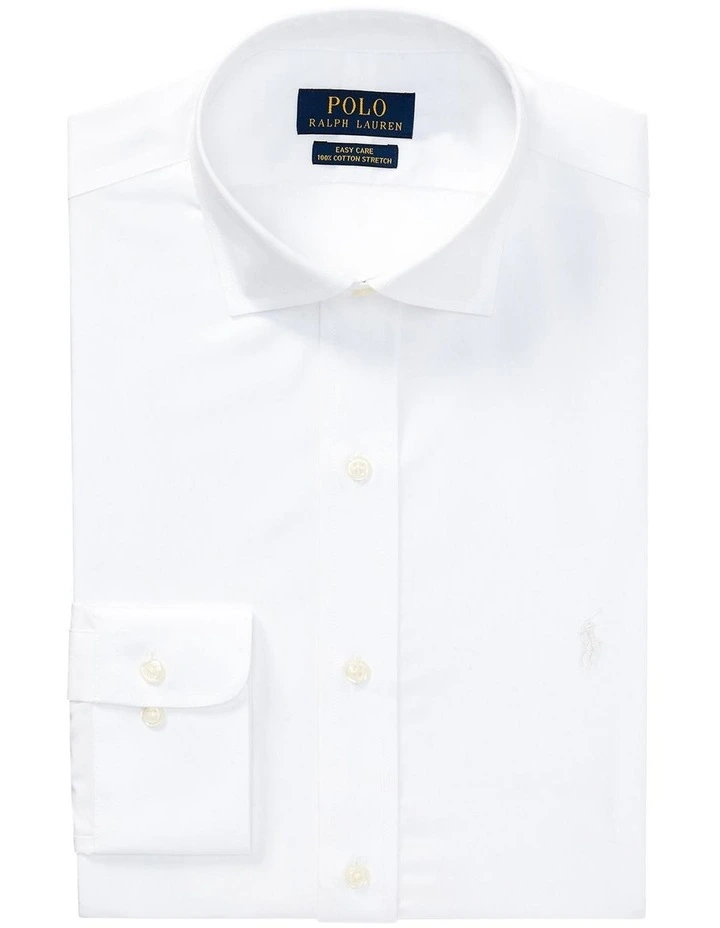 A multistep process that includes high-tension yarn-spinning gives this shirt’s pure cotton fabric a dose of stretch for ease of movement, while a wrinkle-resistant finish ensures easy care.
