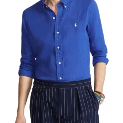 Crafted from lightweight, breathable linen, this shirt is a stylish solution for warm-weather days. Classic Fit: our roomiest silhouette. Cut for a lower armhole and a fuller sleeve. Size medium has a 31″ back body length, an 18″ shoulder, a 46″ chest, and a 34″ sleeve length. Sleeve length is taken from the center back of the neck and changes 1″ between sizes. Button-down point collar. Buttoned placket. Long sleeves with buttoned barrel cuffs. Split back yoke with a box pleat ensures a comfortable fit and a greater range of motion. Locker loop at the center back. Signature embroidered Pony at the left chest. Linen. Machine washable. Imported.Β Model is 6’1″/185 cm and wears a size medium.