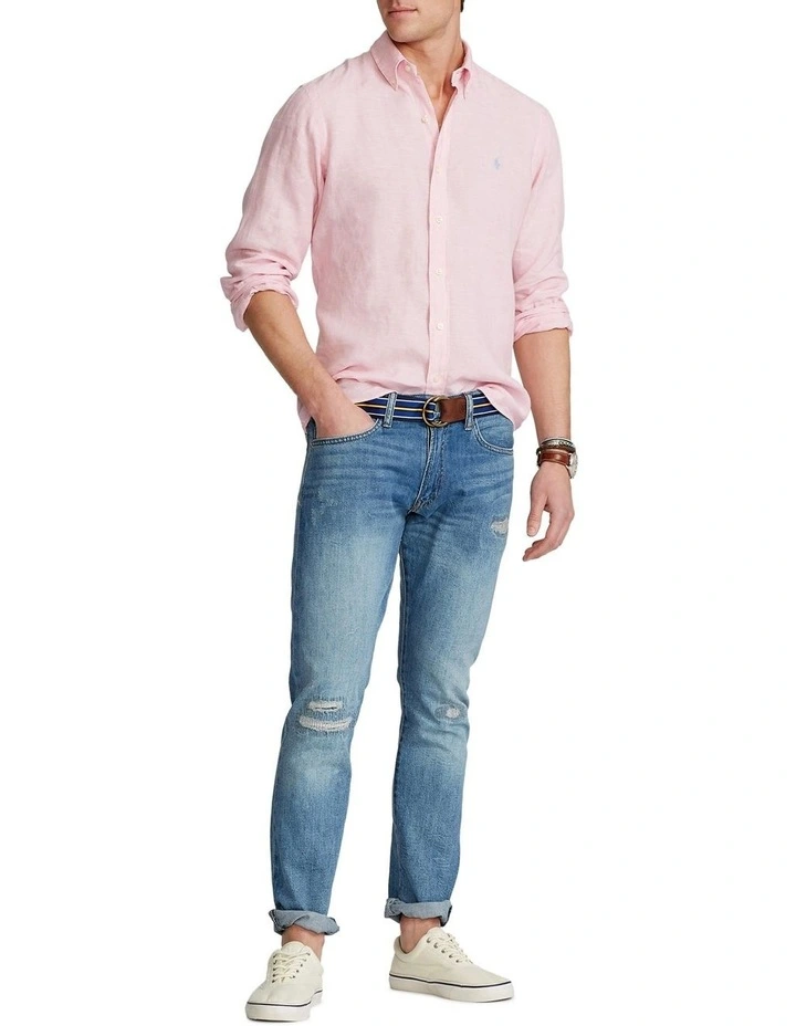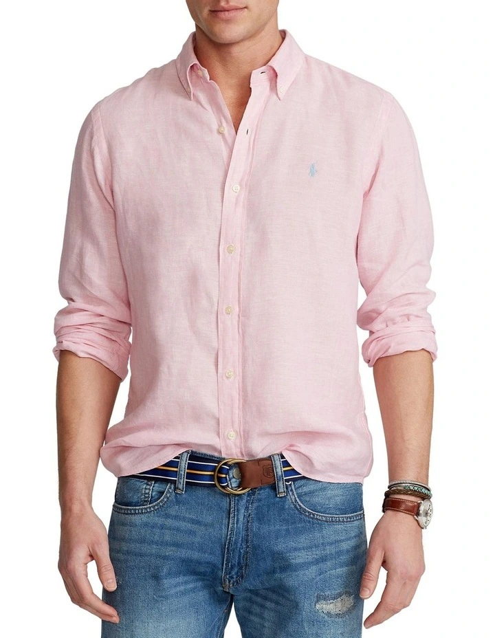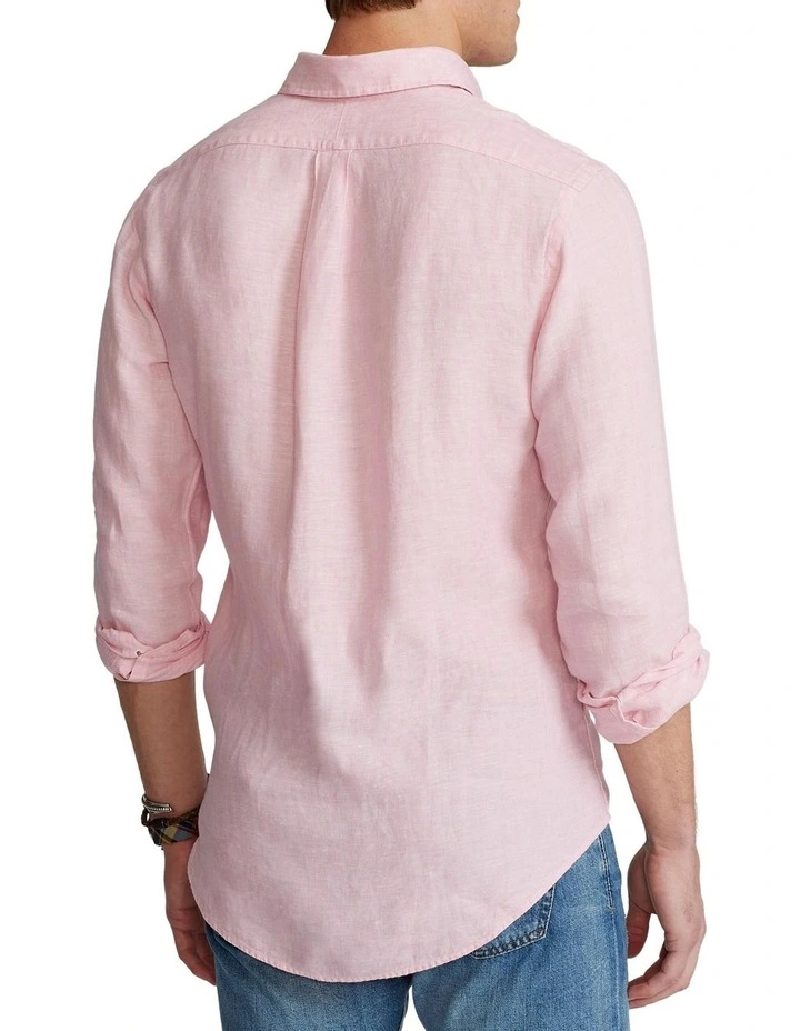 Crafted from lightweight, breathable linen, this shirt is a stylish solution for warm-weather days. Classic Fit: our roomiest silhouette. Cut for a lower armhole and a fuller sleeve. Size medium has a 31″ back body length, an 18″ shoulder, a 46″ chest, and a 34″ sleeve length. Sleeve length is taken from the center back of the neck and changes 1″ between sizes. Button-down point collar. Buttoned placket. Long sleeves with buttoned barrel cuffs. Split back yoke with a box pleat ensures a comfortable fit and a greater range of motion. Signature embroidered Pony at the left chest. Linen. Machine washable. Imported.