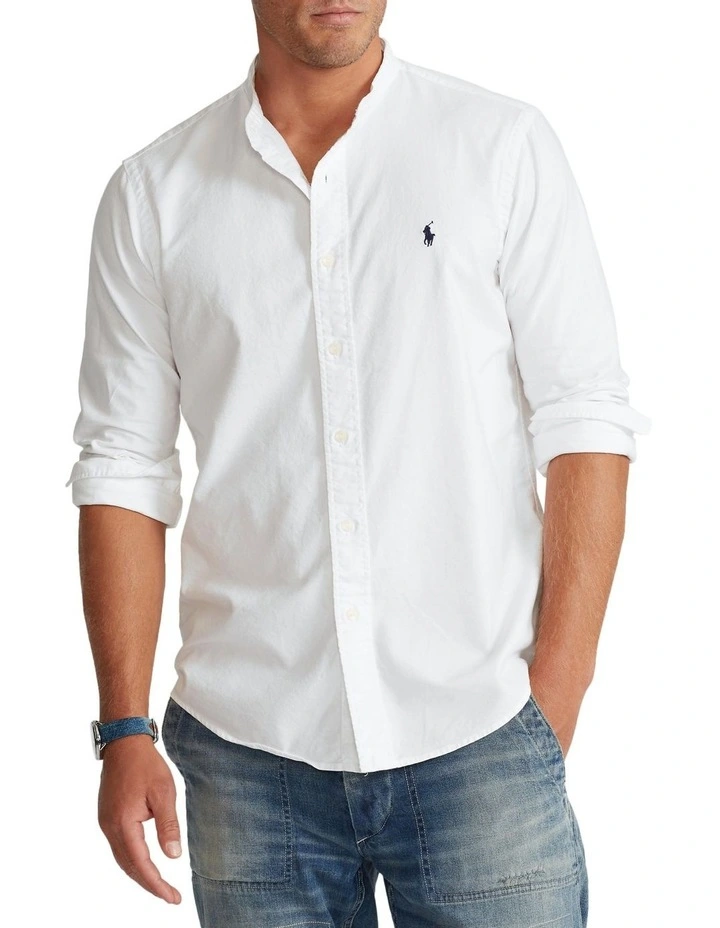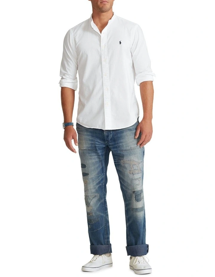 Garment-dyed and washed, this band-collar shirt offers a broken-in look and feel from day one.