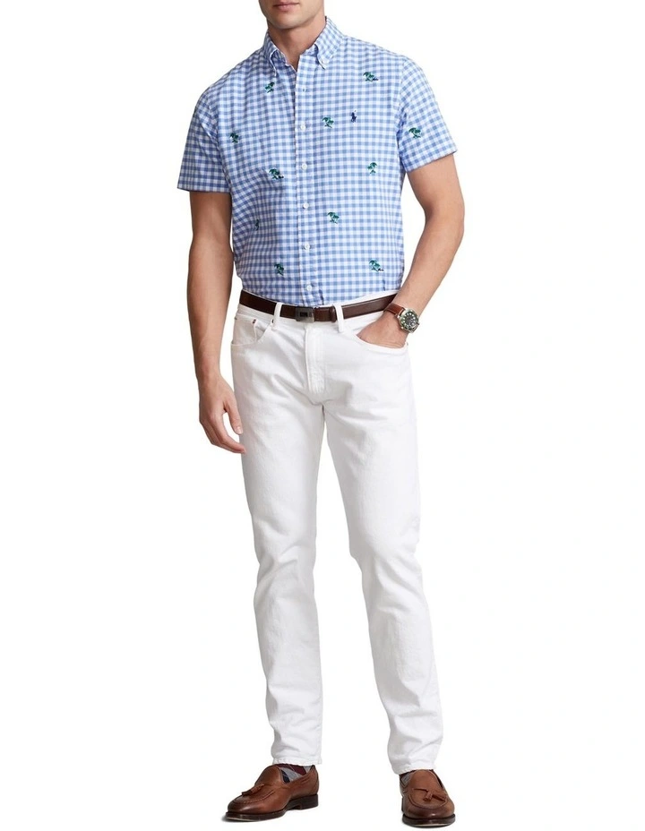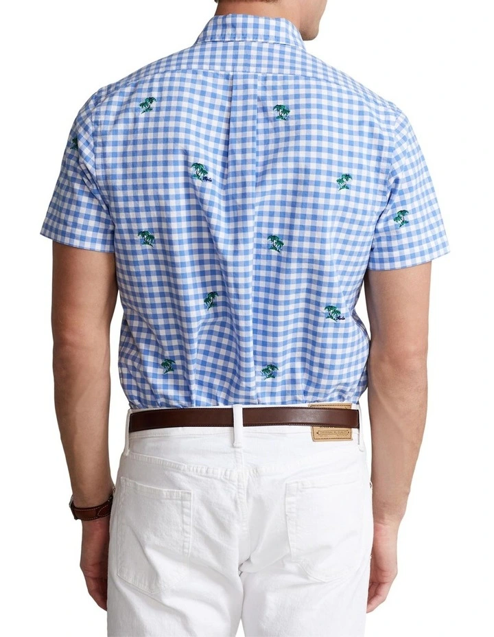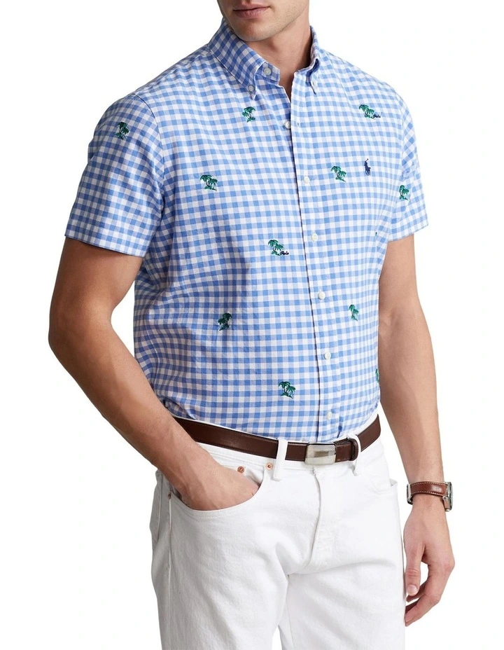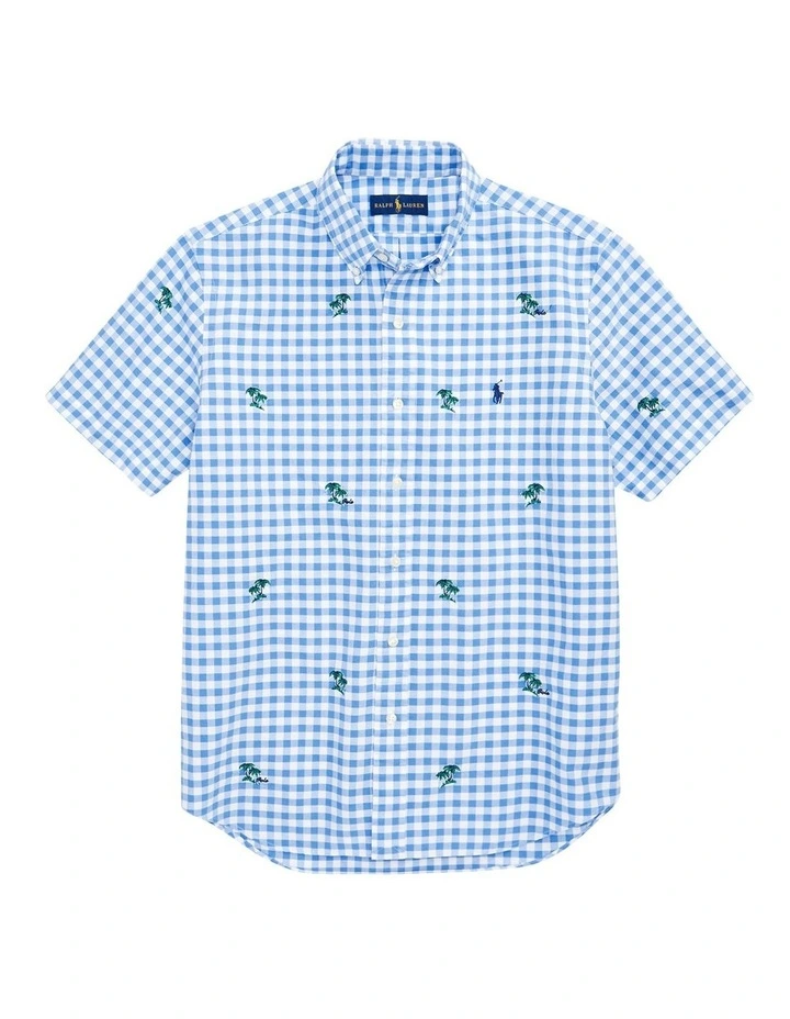 A pillar of Polo style since it was first introduced, the oxford shirt is a versatile staple. This version combines a classic gingham pattern with an embroidered motif of palm trees.