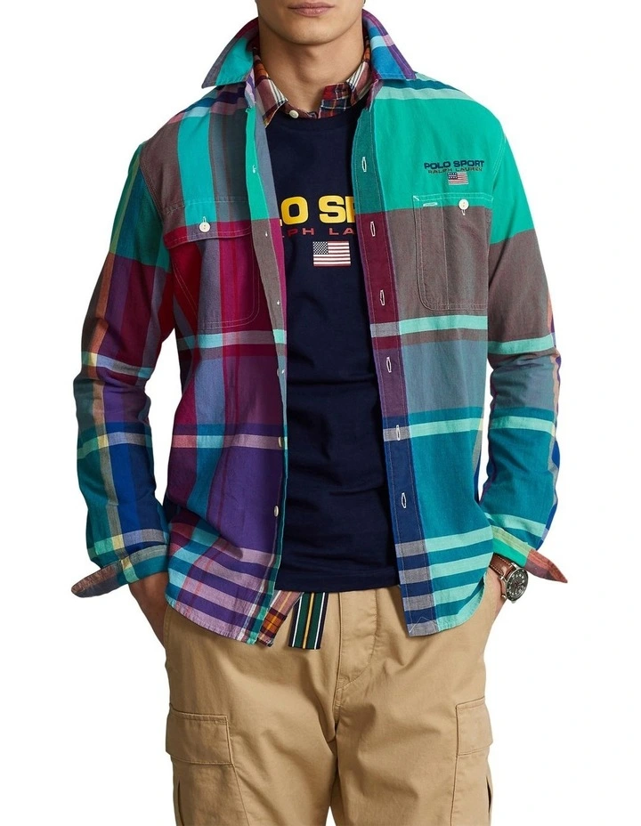 This piece combines a classic workwear-inspired silhouette with authentic Indian madras and our iconic Polo Sport logo from 1992.