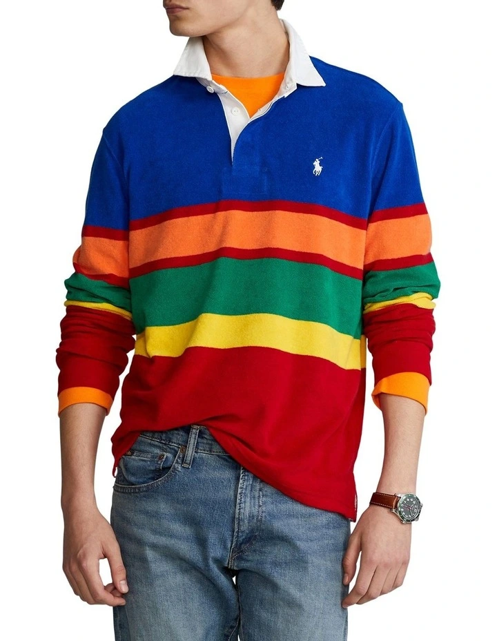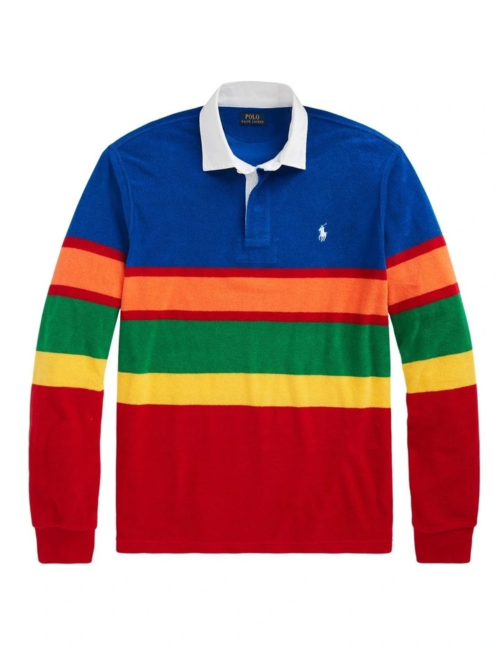 This version of our signature rugby shirt is updated with cotton-blend terry and a striped pattern in the season’s vibrant shades.