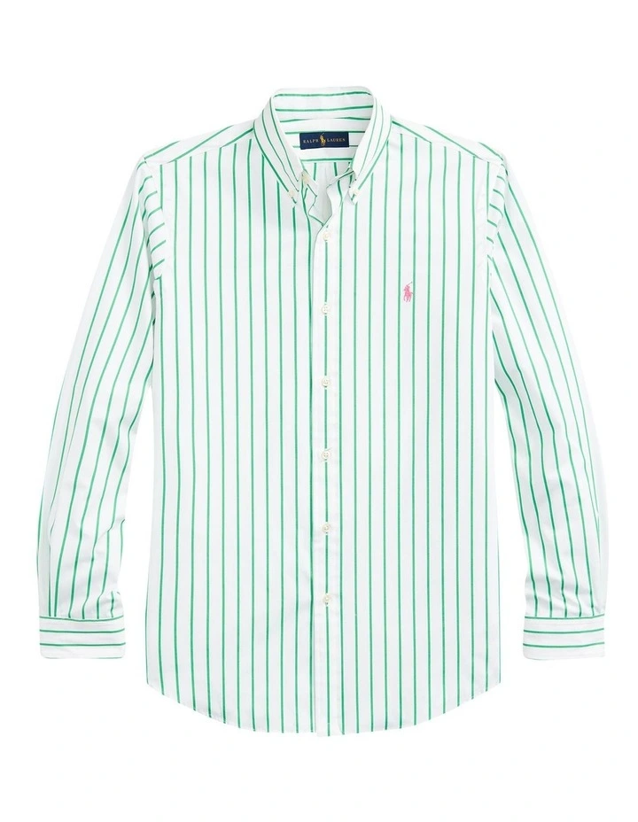 - Button-down point collar. Buttoned placket.