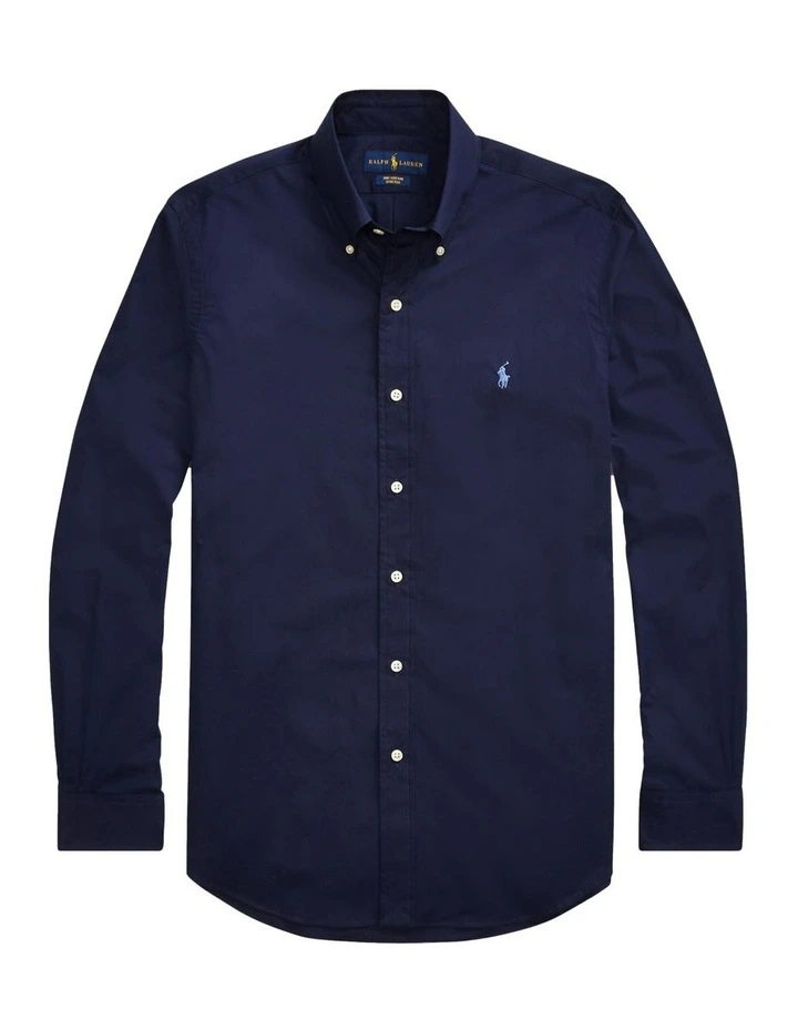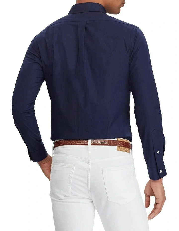 A multistep process that includes high-tension yarn-spinning gives this shirt’s pure cotton fabric a dose of stretch for ease of movement.Slim Fit: cut close to the body, with fitted sleeves and higher armholes; 5″ slimmer at the waist than our Classic Fit.Size medium has a 31″ body length, an 18″ shoulder, a 42″ chest, and a 34″ sleeve length. Sleeve length is taken from the center back of the neck and changes 1″ between sizes.Button-down point collar. Buttoned placket.Long sleeves with buttoned barrel cuffs.Split back yoke with a box pleat ensures a comfortable fit and a greater range of motion.Signature embroidered pony at the left chest.100% cotton.Machine washable. Imported.Model is 6’1″/185 cm and wears a size medium.
