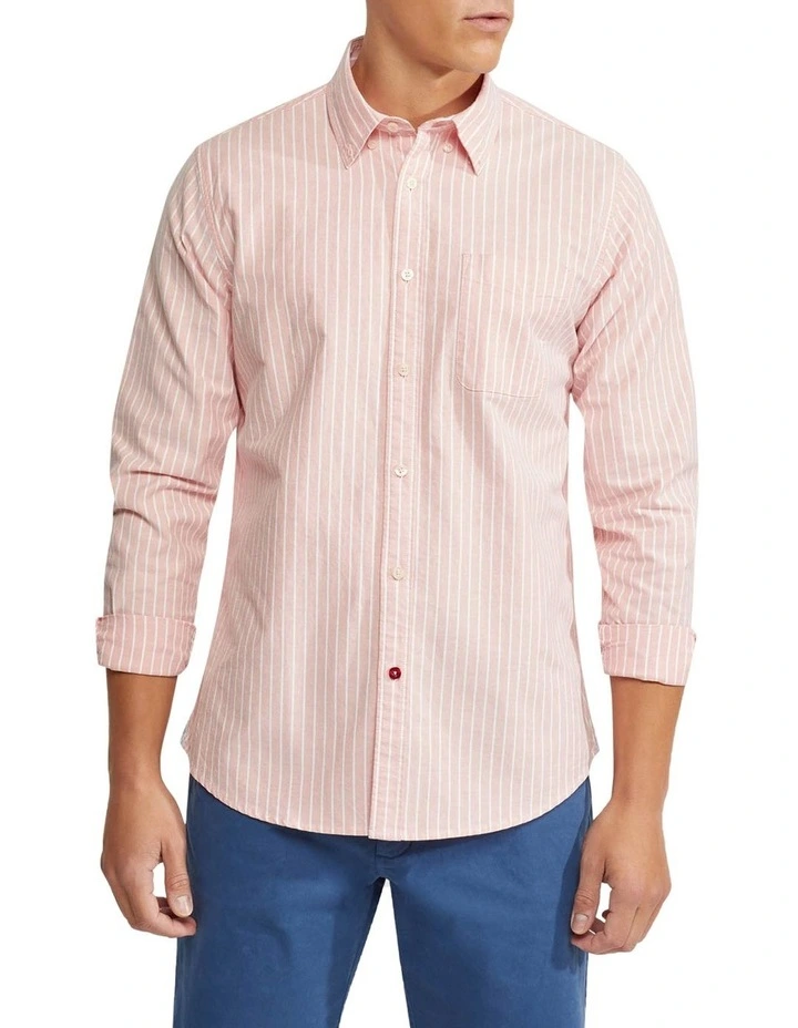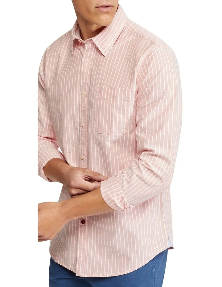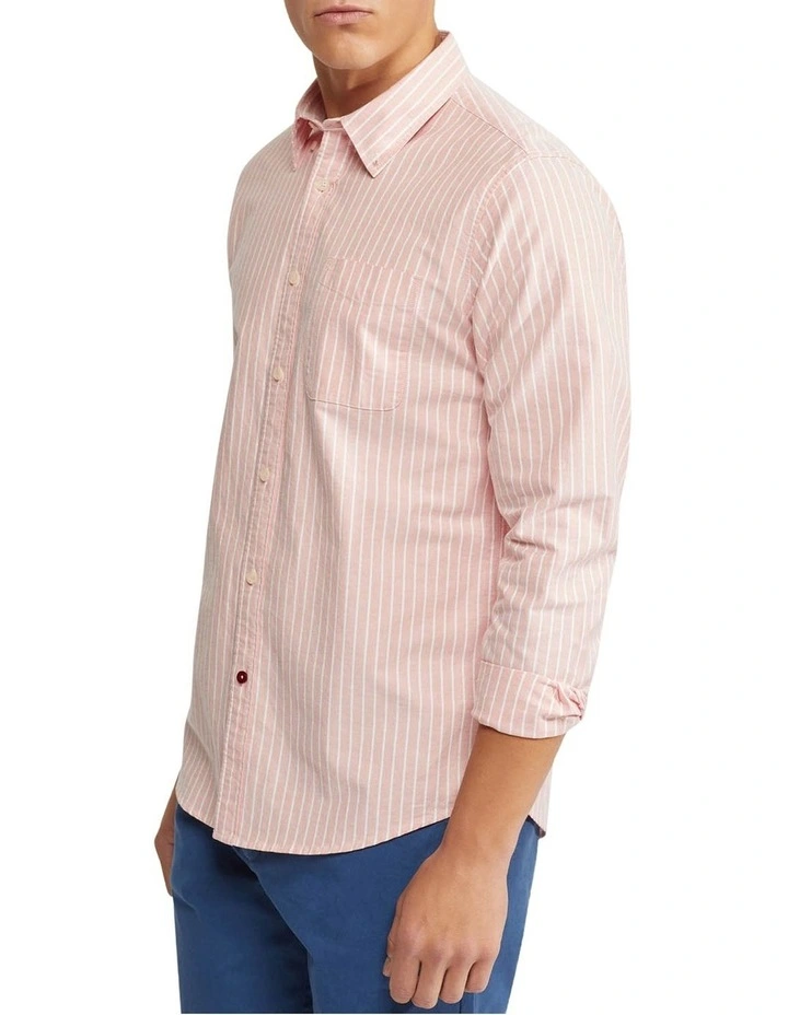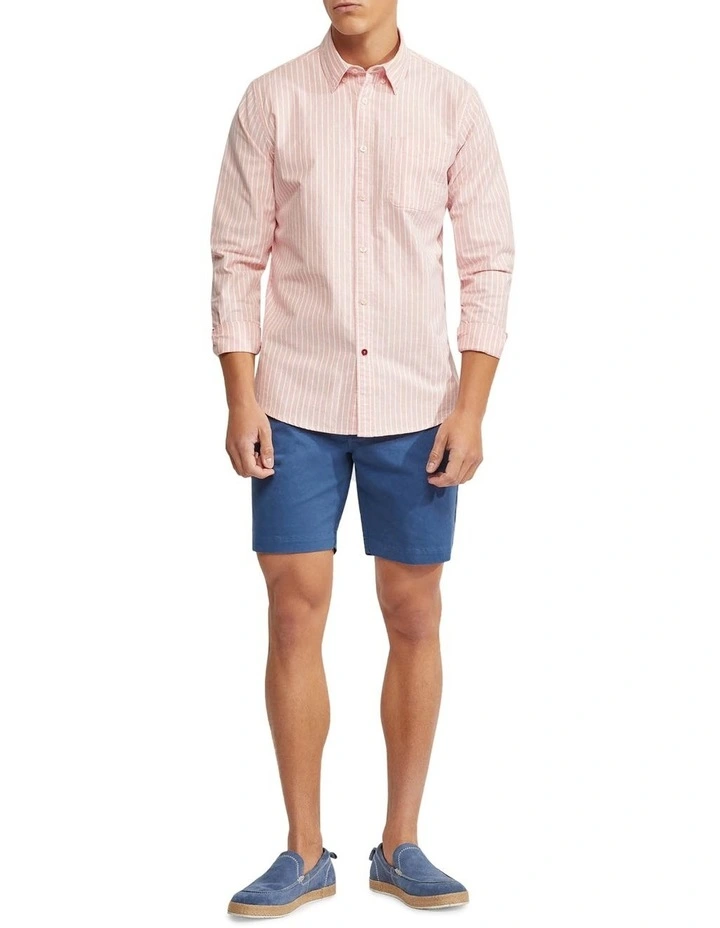 The Portland Oxford Weave Striped Shirt will be your go-to for a smart casual look. This regular fit shirt is crafted from 100% organic cotton in a striped oxford weave and features a chest pocket, a small button-down collar, and a contrast button. Team it with some chinos shorts and sneakers for a go-anywhere look.