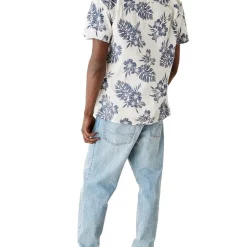 Wholesale ๐ American Eagle Tropical Button-Up Resort ๐ Shirt In White/Blue โ๏ธ