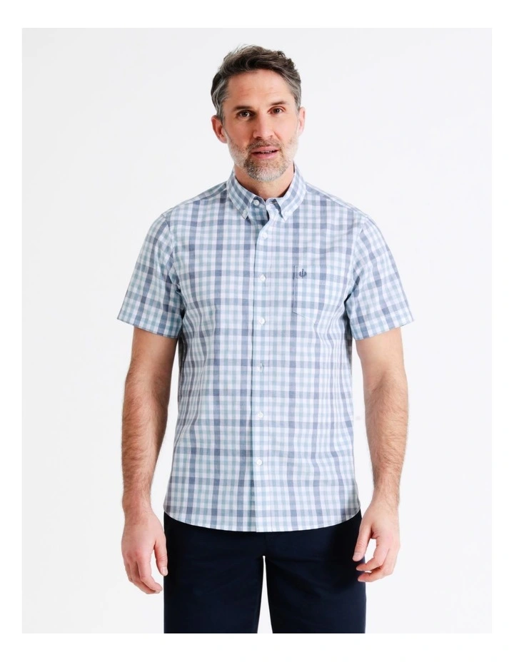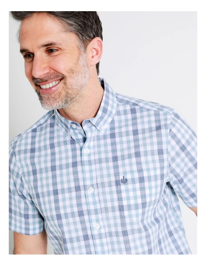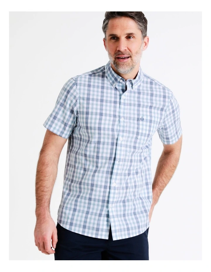 ReserveΒ Barber Short Sleeve Check Shirt in Light Blue