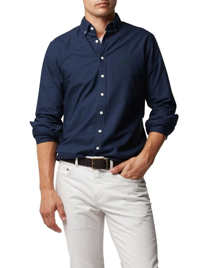 The oxford button-down shirt is a perennial favourite and a wardrobe essential. This luxurious version is prestigiously milled in Italy. Its washed 2-ply construction creates a soft, broken-in feel that will continue to soften over time with washing and wear.