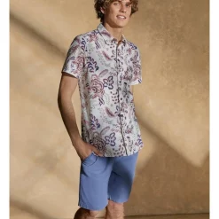 Lightweight cotton yarns make this linen shirt a breezy choice for summer days. Expertly printed in Italy with eye-catching and versatile navy and white print. Prewashed for superior softness from the word go.