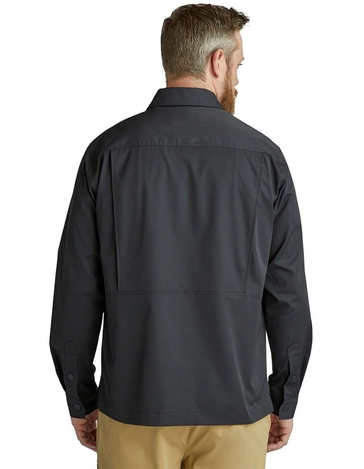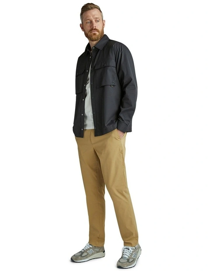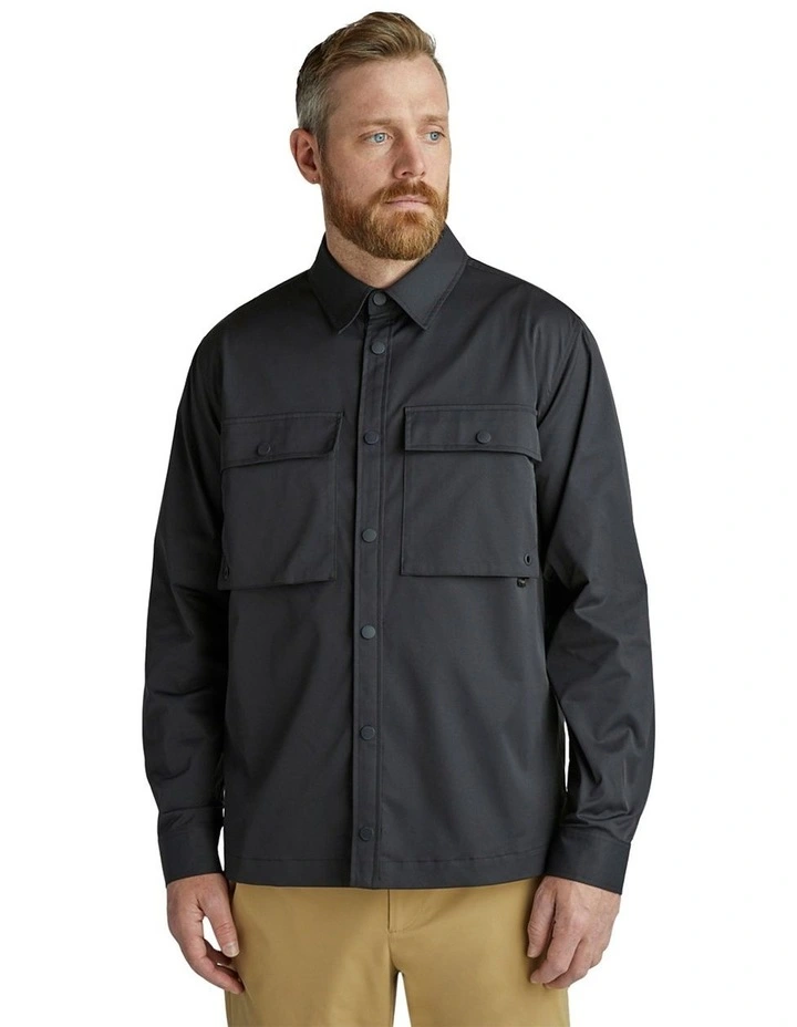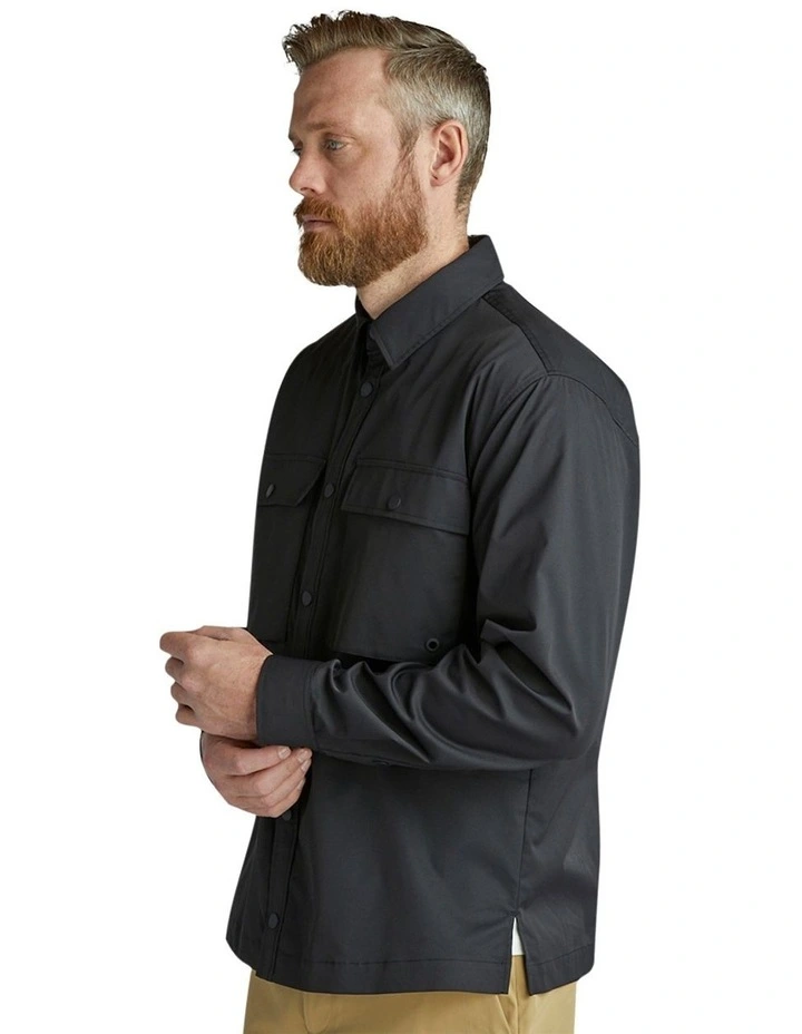 The 100% polyester Tech Shirt Jacket is the perfect water repellent shell made from Japanese engineered fabric and features mesh in the back for essential breathability. Pair it with the Tech Pant for a completed look.