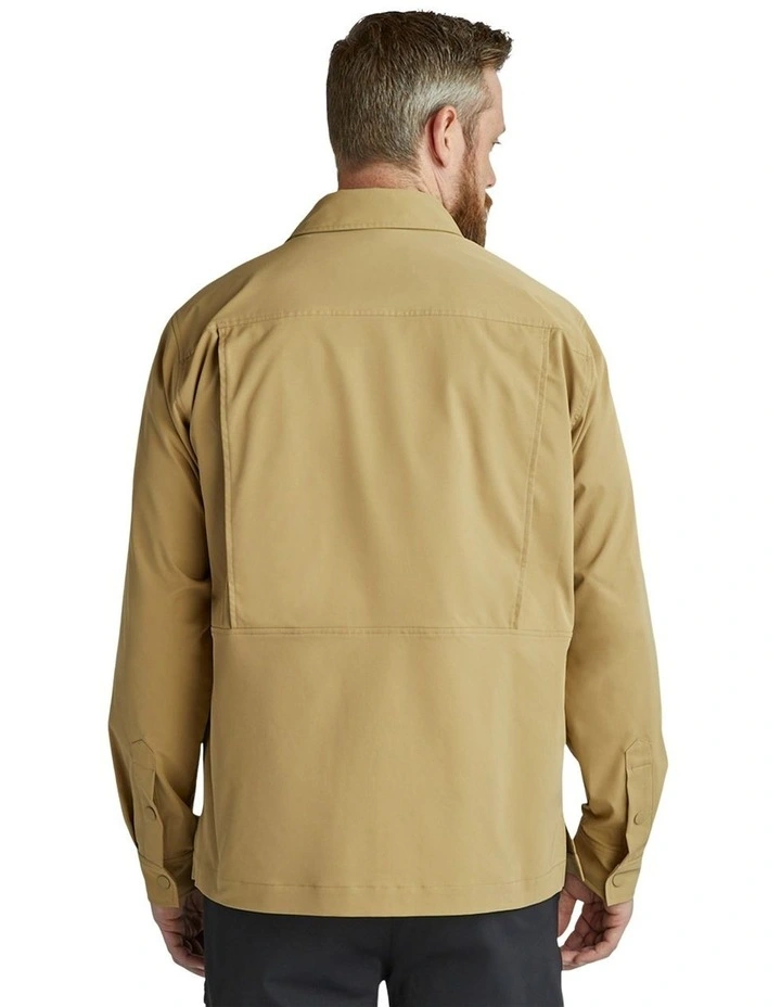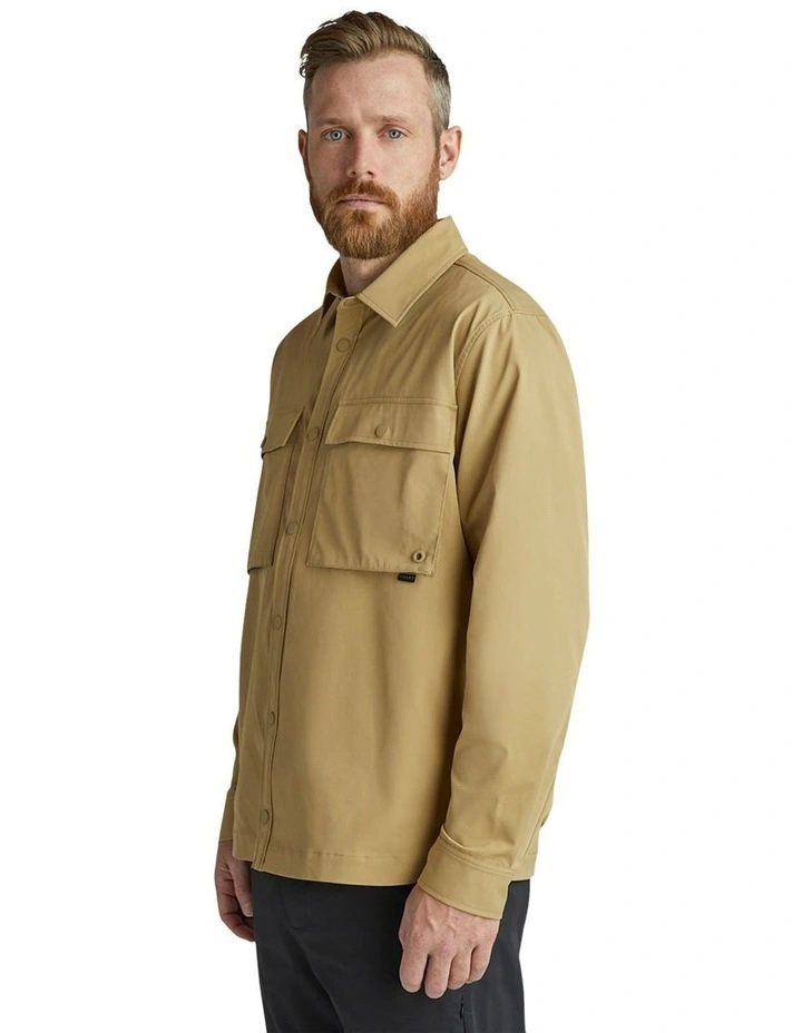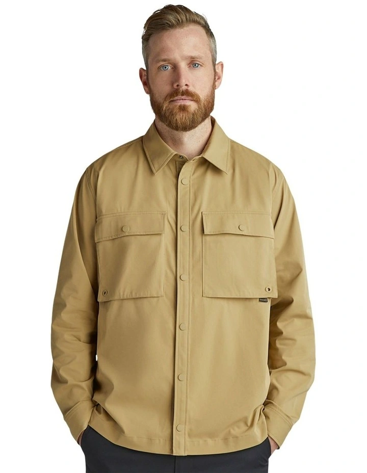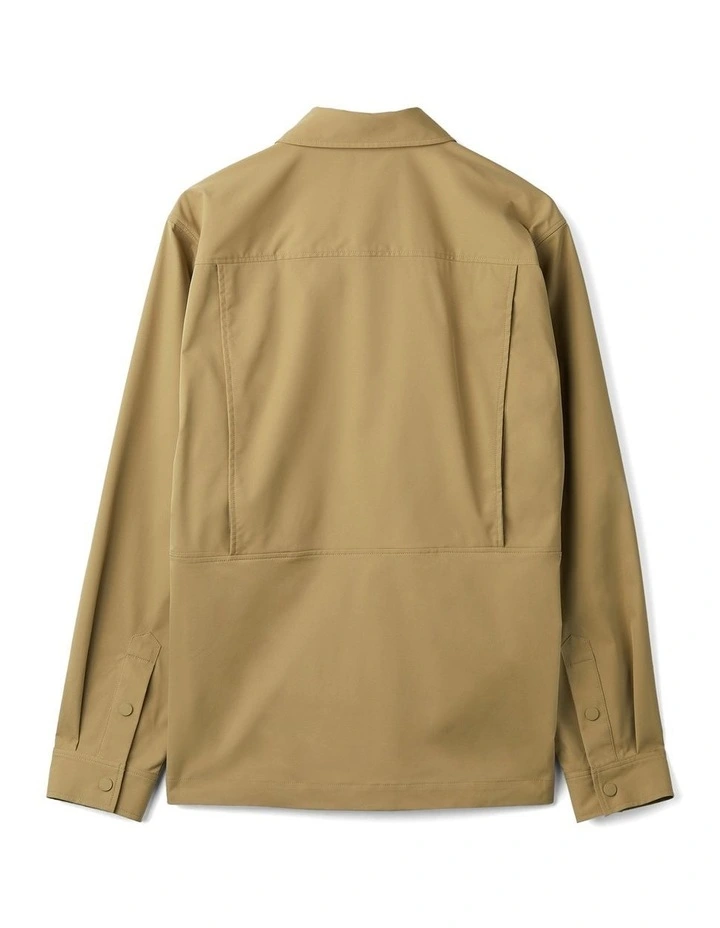 The 100% polyester Tech Shirt Jacket is the perfect water repellent shell made from Japanese engineered fabric and features mesh in the back for essential breathability. Pair it with the Tech Pant for a completed look.