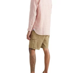 The woven jacquard knit of the organic cotton blend fabric adds a subtle micro print to this button-collar shirt.